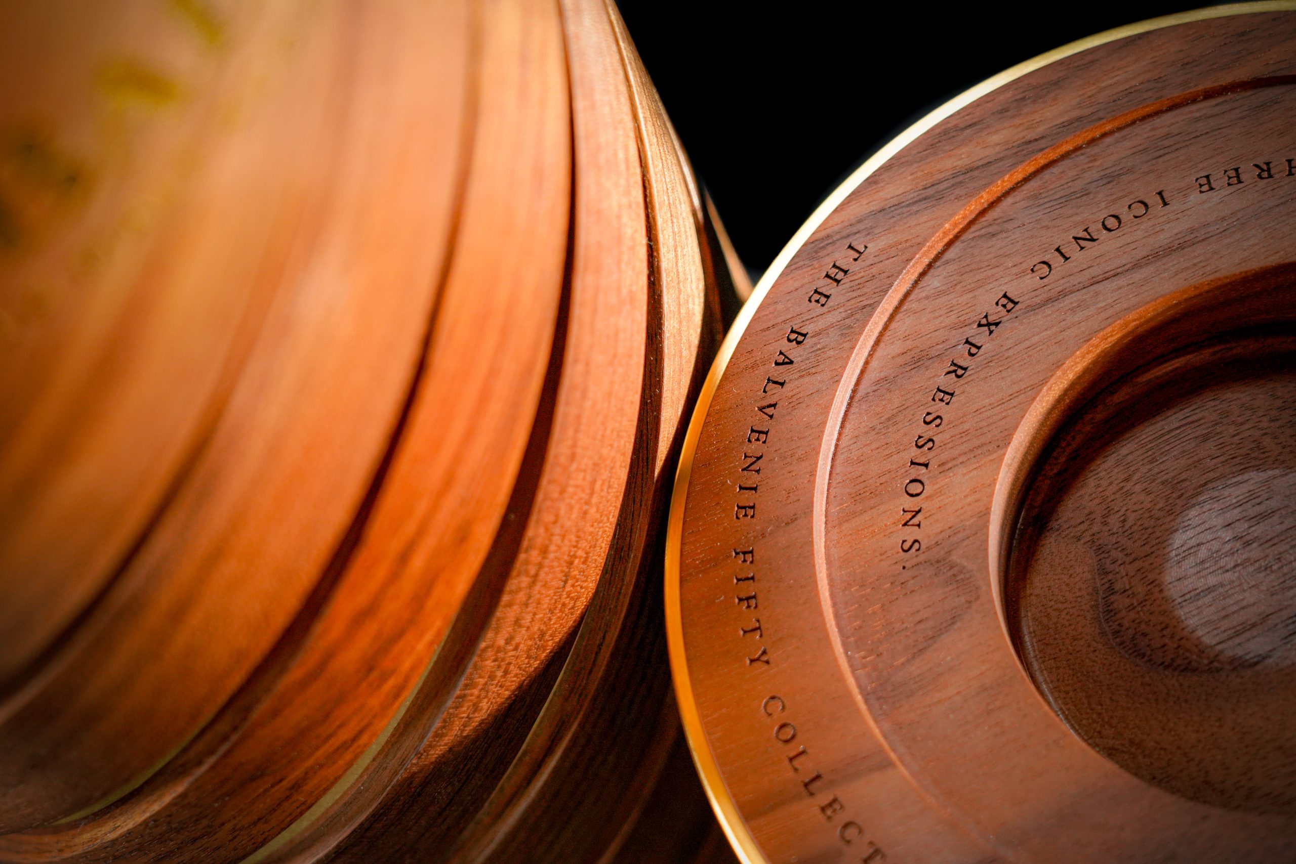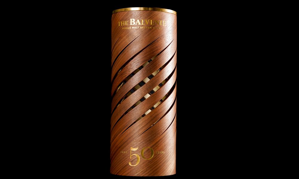 William Grant & Sons asked Croglin to design luxury packaging for The Balvenie 50 Year Old. Our solution: a double-helix structure in American black walnut around an aluminium core, elevated with gold gilding. Over 140 components were hand-assembled to exacting standards, combining precision engineering, craft, and storytelling across a limited run of 125 units.