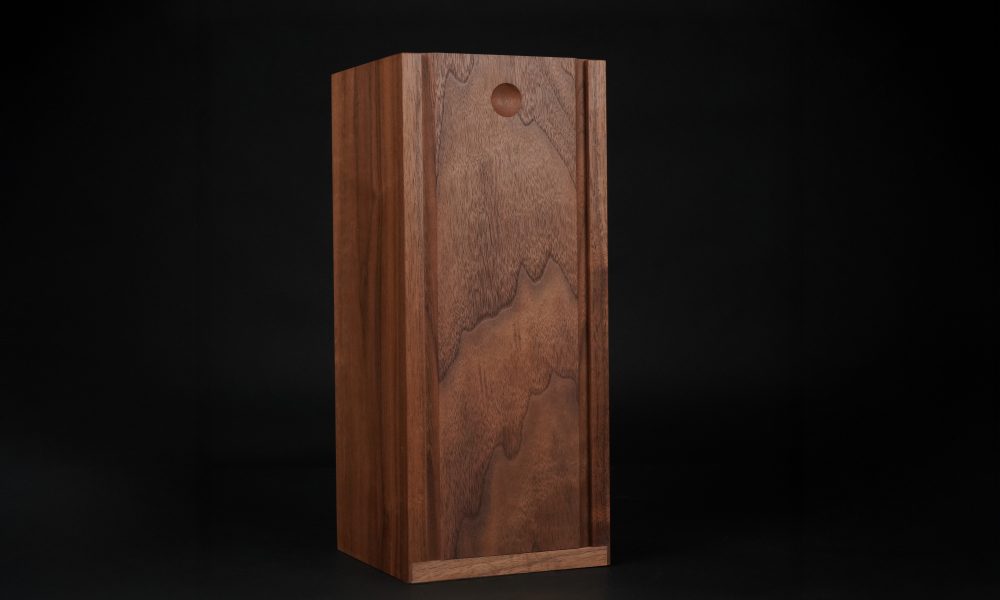 A premium presentation box with a double-opening front that frames and reveals the bottle inside — crafted for display, gifting or high-impact retail.